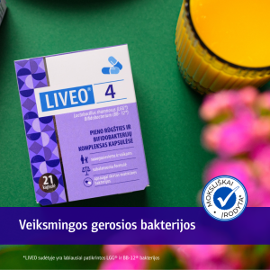 Kiekvienoje LIVEO 4 kapsulėje yra toks gerųjų bakterijų kiekis, koks būtinas teigiamam poveikiui pasiekti